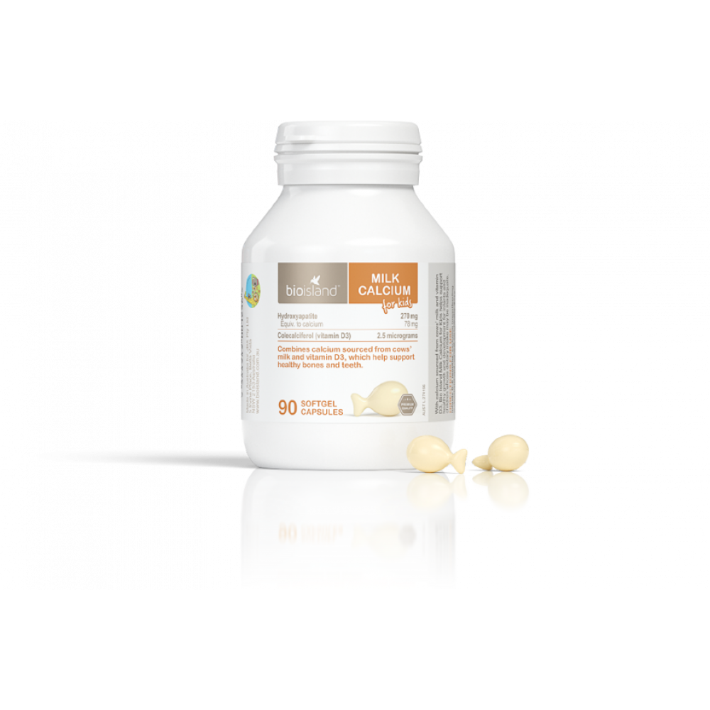 Milk Calcium của Bioisland được đặc chế từ thành phần sữa bò non, giúp hỗ trợ tốt cho sự phát triển của xương, răng, phát triển chiều cao. Đặc biệt, Milk Calcium của Bioisland được sản xuất từ nguồn canxi tự nhiên rất dễ hấp thụ và không gây lắng cặn, không tác dụng phụ như gây nóng hoặc táo bón cho bé, được sản xuất với công nghệ của Úc an toàn cho bé từ 7 tháng tuổi.
